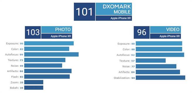 延續日前 iPhone XS Max 在《DxOMark》奪下最強雙鏡頭機種之名後,iPhone XR 也成為了《DxOMark》手機相機榜當中,單鏡頭手機中總得分最高的款式,再度為自己拿下一個值得慶賀的指標。專業評測機構給 iPhone XR 相機的總分為 101 分,其中照相部分得 103 分、錄影則得到 96 分,跟 iPhone XS Max 總分 105 的成績(照相110分、錄影96分)並沒有差距太多。