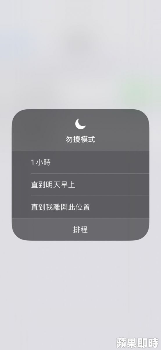 原本就有的勿擾模式,升級到iOS 12後再進化,使用方式簡單,在控制中心按壓月亮符號的勿擾模式,會出現勿擾「一小時」、「直到明天」或是「直到我離開此位置」,該功能的升級後,運用在一般會議上更方便,可以在會議時開啟勿擾,離開會議的地方後,等於會議結束,勿擾功能也會自動關閉,讓使用者可以繼續接收訊息。