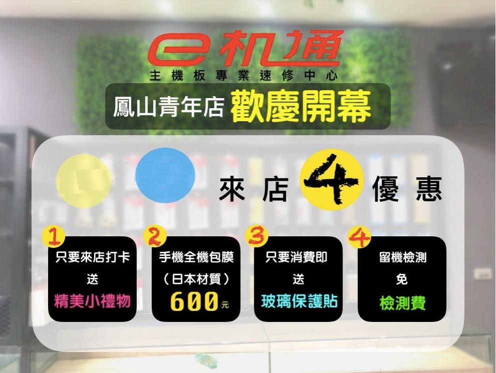 e機通鳳山青年店開幕慶【開幕期間送玻璃保護貼&免檢測費】