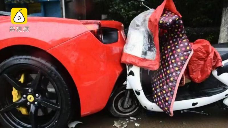 綜合陸媒報導,這名王姓女子當天騎車在路上,當時正下著雨,她以緩慢的速度邊騎車邊看手機導航,卻沒注意到前方停著一台法拉利,下秒竟直接整台車撞上法拉利的後方,安全帽還因此噴飛過一個車道,造成法拉利的保險桿壞損,所幸人沒有大礙。