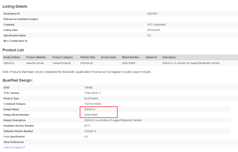 直到現在,藍牙官方認證數據庫裡出現了 HTC 的一款新設備,型號剛剛好就是 2Q6U,這無疑就是 HTC 5G 手機。雖然已經可以肯定它的存在,但是對它除了支援藍牙5.0外,一無所知。