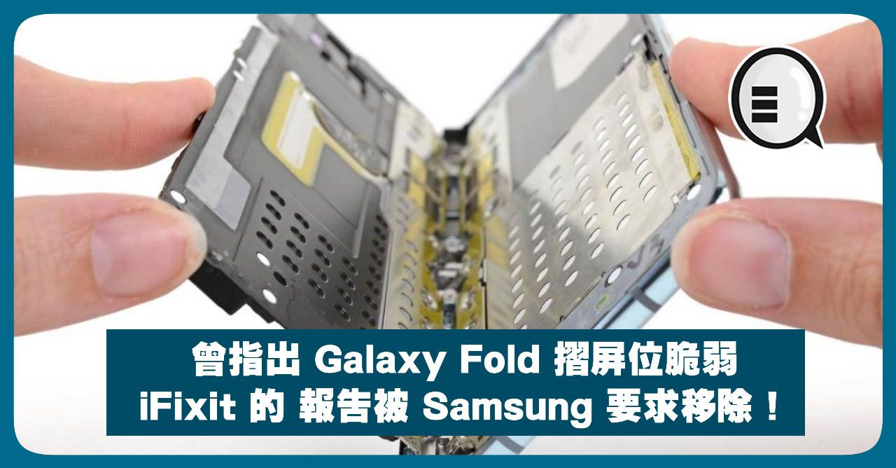 曾指出 Galaxy Fold 摺屏位脆弱,iFixit 的 報告被 Samsung 要求移除!