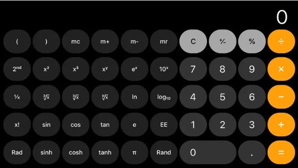 找不到開根號或三角函數嗎?iPhone計算機看似陽春,但若是將手機橫放之後就變得不一樣了。螢幕橫放後左半邊會顯示科學計算機的按鍵,實用的mr、(),以及三角函數全都在這了。