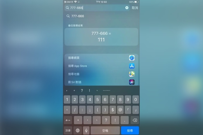 在iPhone搜尋欄中,可以直接鍵入數字運算。 圖/讀者提供