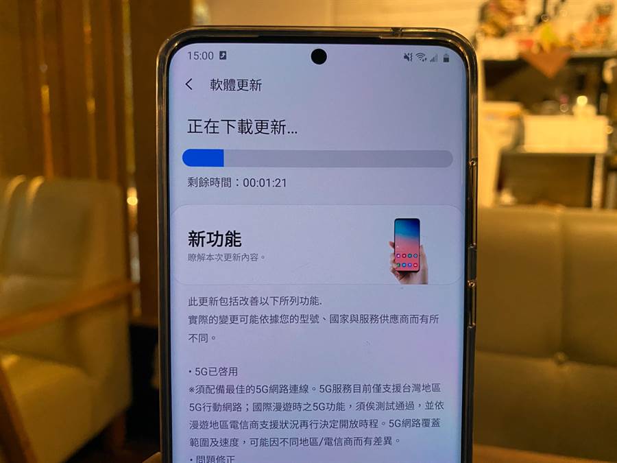 隨著中華電信宣布5G開台,三星已在第一時間推送了Galaxy S20系列韌體升級,升級完即可體驗 5G(需搭配5G方案)。(黃慧雯攝)