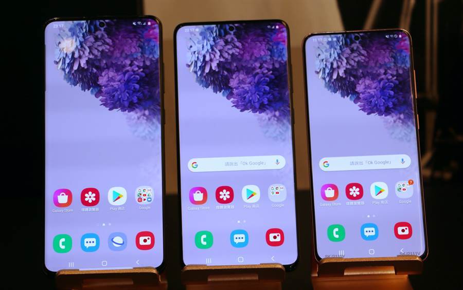 Galaxy S20 Ultra、Galaxy S20+以及Galaxy S20分別搭載6.9吋、6.7吋以及6.2吋Dynamic AMOLED螢幕,都支援5G。(黃慧雯攝)