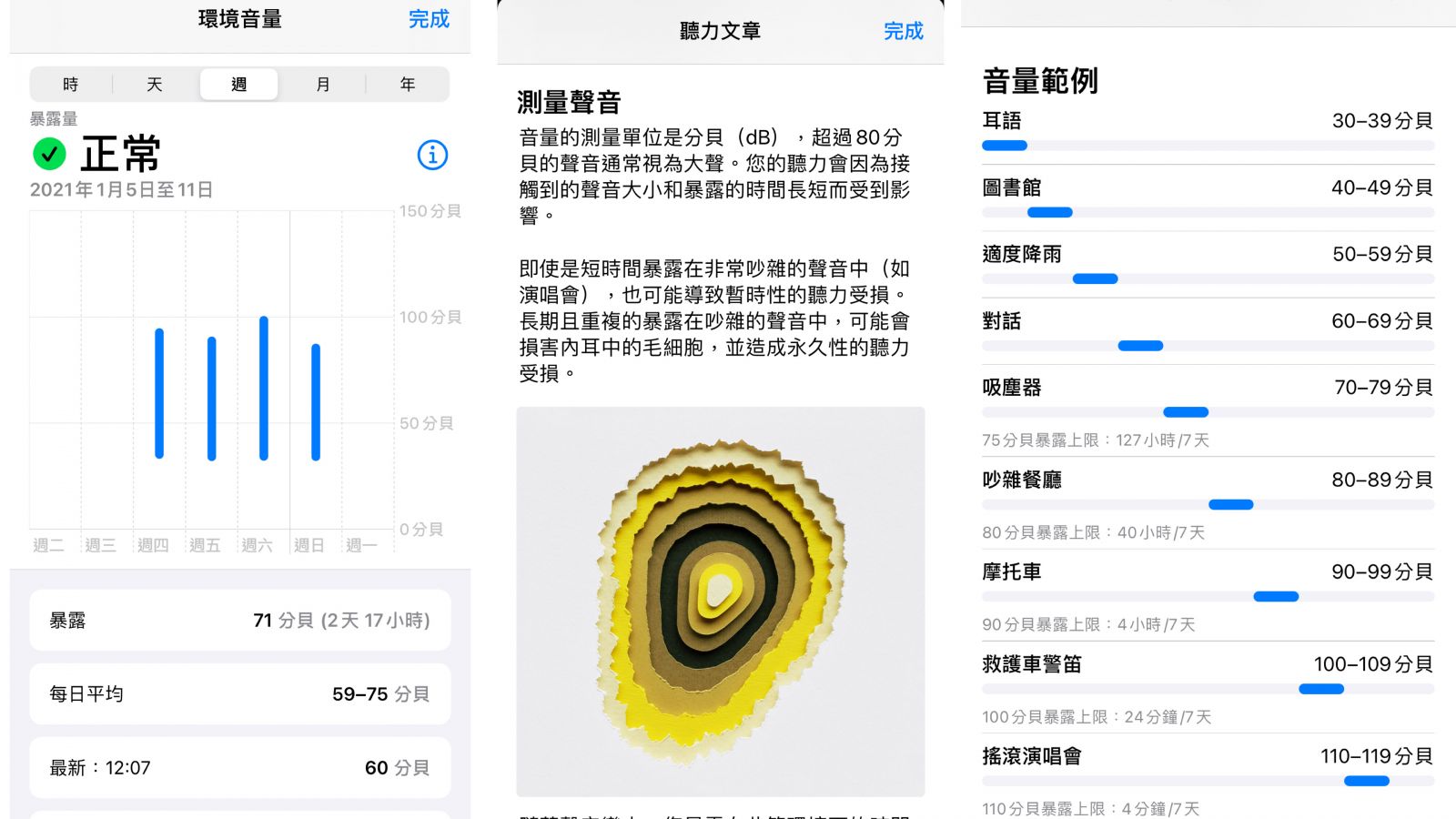 你也是那種經常把耳機聲音開很大,但不自覺的人嗎?其實耳機音量和時間長度長期下來也會對聽力造成影響,如果你對平常所使用音量狀況或是所處環境音量沒有概念,透過「健康」App 也能追蹤耳機和環境的暴露音量,可將 AirPods、EarPods 和其他相容耳機連接到 iPhone,這樣耳機音量會自動傳送至「健康」App。