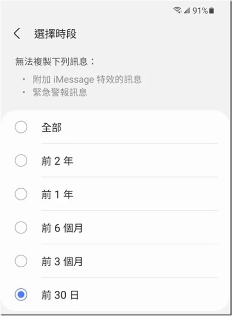 簡訊還可以選擇要保留多久時間內的簡訊。
