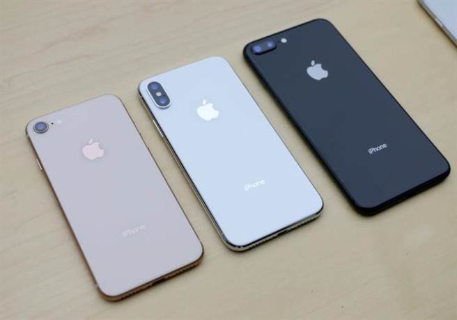 由左至右分別是iPhone 8、iPhone X以及iPhone 8 Plus。(本報系資料照/黃慧雯攝)