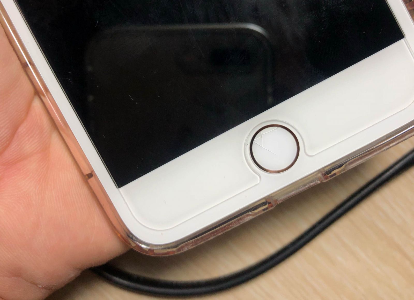 沒有壓到,iPhone 8 的 HOME 鍵居然會自己裂開?近日 PTT 網友發文表示,將 iPhone 8 Plus 接著電源充電後,過沒多久就發現 HOME 鍵玻璃裂開,在整個過程中並沒有施加外力,似乎是 HOME 鍵自己爆開的: